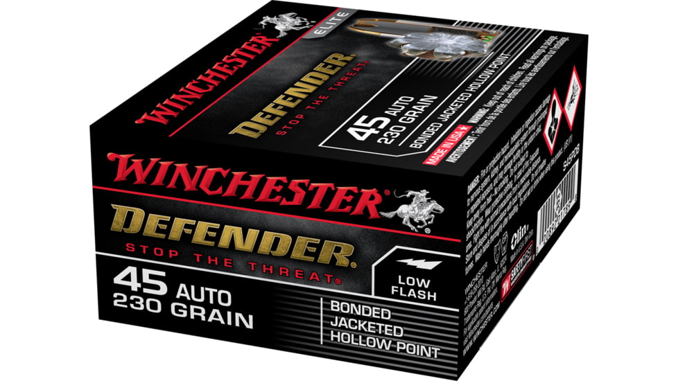 - Winchester DEFENDER HANDGUN .45 ACP 230 grain Bonded Jacketed Hollow Point Brass Cased Centerfire Pistol Ammunition