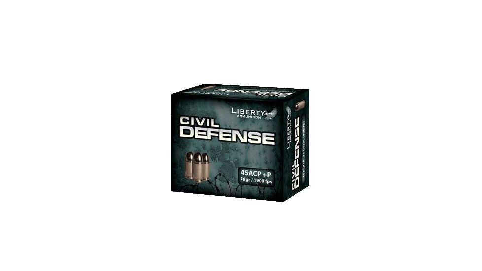 - Liberty Ammunition Civil Defense .45 ACP +P 78 grain Hollow Point Brass Cased Centerfire Pistol Ammunition
